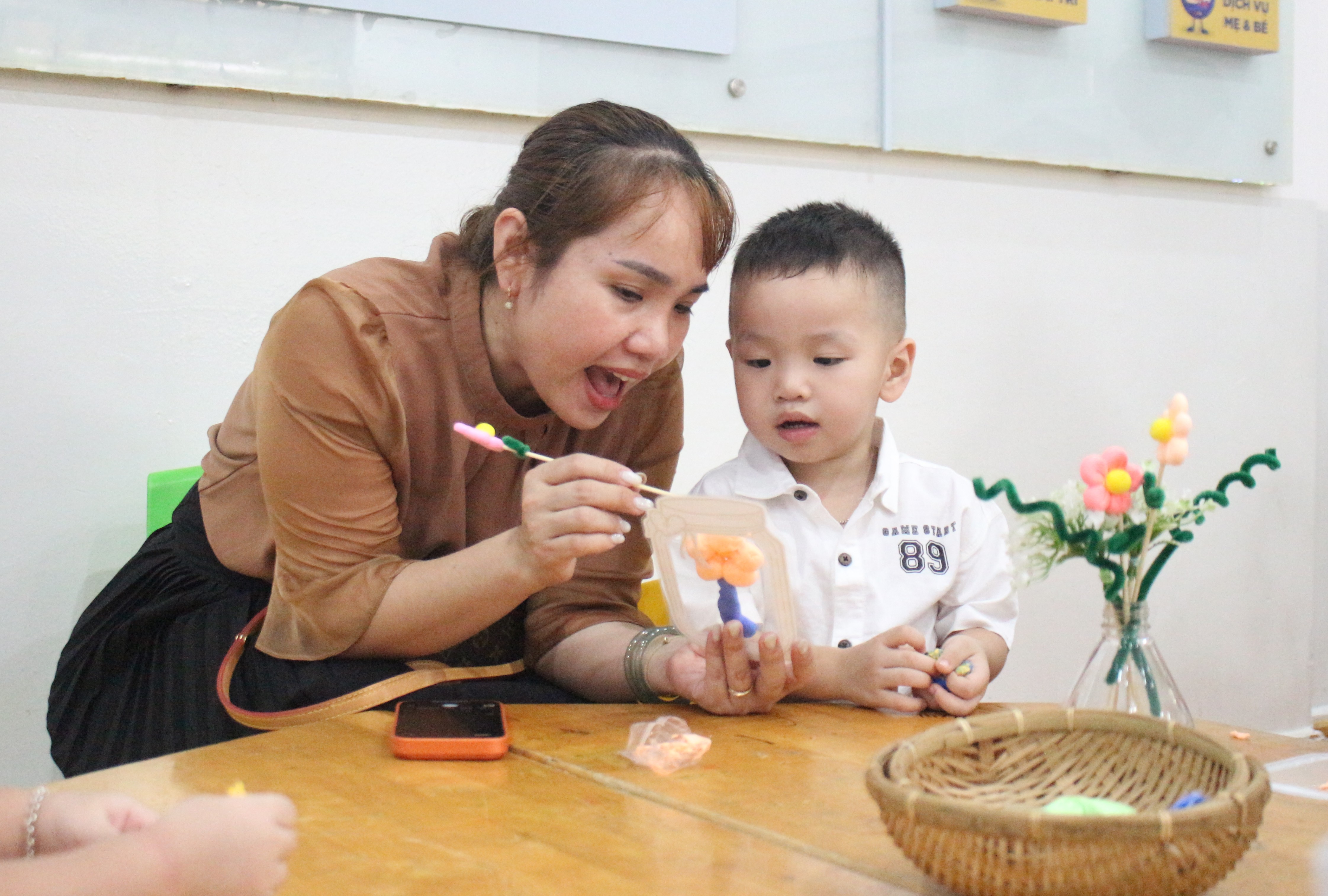 Tại IGC Kiddy, không khí rộn ràng ngập tràn ngay từ sáng sớm. Những bàn tay nhỏ xinh thoăn thoắt cắt dán, tô màu, gấp giấy để làm nên những tấm thiệp, bó hoa và món quà tự tay con tạo nên. Dù đôi khi nét vẽ còn vụng về, dòng chữ chưa thật ngay ngắn, nhưng trong từng sản phẩm ấy là cả tấm lòng hồn nhiên và chân thành nhất mà con gửi tặng những người phụ nữ thân yêu.